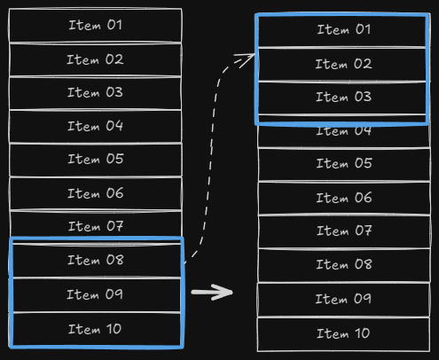 이럴 경우를 위해 사전에 아이템 요소들을 상단과 하단에 복제해서 추가한다. 그리고 화면 위치를 두번째 페이지의 첫번째 요소에 정렬하면 준비가 끝난다.