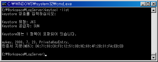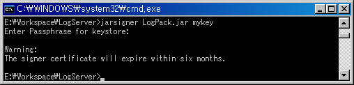 이제 jar파일에 서명을 해보자. 이때 사용하는 명령은 jarsigner이다. 이는 아직(ver 1.6.0) 한글화가 안되있다. ^^:
