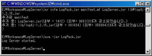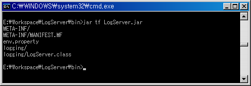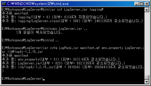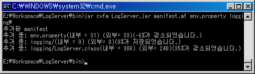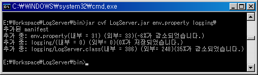 jar cvf LogServer.jar bin\\env.property bin\\logging\\ 그래서 bin 디렉토리로 먼저 이동한 후에 압축을 하였다.