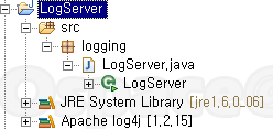 패키지는 logging이고 그 안에 LogServer 클래스가 있고, 이 클래스는 log4j를 사용한다고 가정하자.