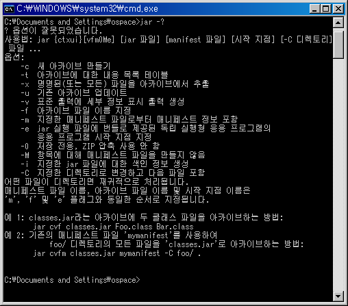 이렇게 해서 대충 jar파일을 압축하고 푸는 것을 보았다. 실제 jar에는 다른 여러 옵션들이 있다. 이는 아래에 친철히(?) 표시해주었다.