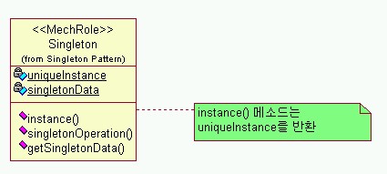 - 자바에서 정적 메소드(static method)를 갖는 클래스와 Singleton 클래스를 비교하면, Singleton을 사용하는 경우 명확한 객체 지향 설계가 가능한 반면, 정적 메소드를 사용하는 클래스는 단순한 기능 목록이 될 우려가 있다.