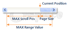 그리고, 양쪽 버튼과 스크롤박스 크기를 제외한 나머지 영역이 스크롤박스가 움직일 수 있는 범위이다.(MAX Scroll Pos)