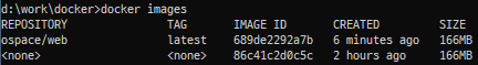 그러면 repository에 ospace/web이라는 image가 보인다.
