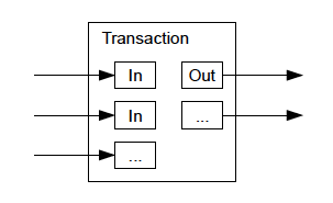 보통의 이전 거래로부터 단수 입금이거나 소량이 합쳐진 복수 입금이 있을 수 있다. 출금은 지불용 출금과 송금인에게 돌려줄 거스름돈 출금으로 많아야 출금은 두개이다.