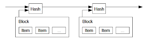 이중 지불을 막기 위해 거래를 해싱해 타임스탬프를 찍어서 해시기반 증명작업(proof-of-work)을 연결한 사슬로 생성한다. 만들어진 사슬로 인해 전체 작업증명을 재수행하지 않고는 기록을 변경할 수 없다.