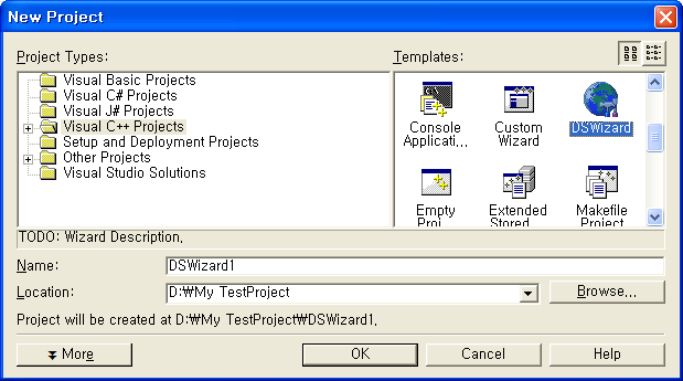 설치 완료후 새로운 프로젝트 실행시 "DSwizard"가 보인다.