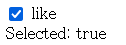 선택되면 "true", 선택해지 되면 "false"가 잘 표시된다.
