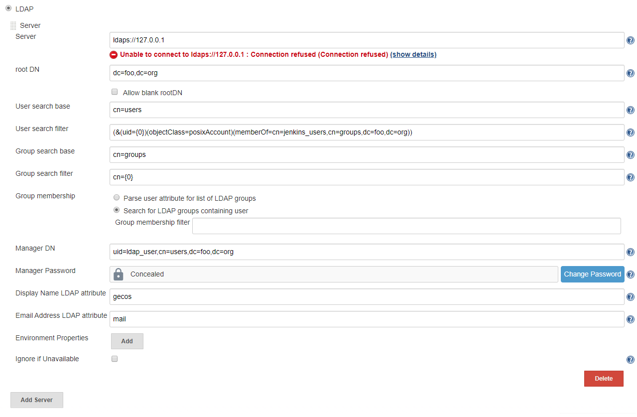 User search filter: (&(uid={0})(objectClass=posixAccount)(memberOf=cn=jenkins_users,cn=groups,dc=foo,dc=org))