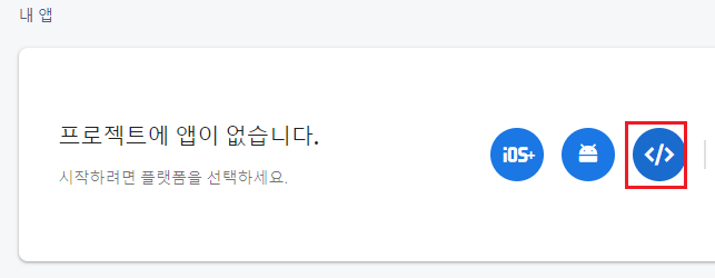 프로젝트가 설정이 되면 FCM를 전송하기 위한 설정을 진행하면 된다. 웹 앱 형태로 추가 할려고 한다.