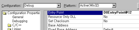 다음과 같이 Linker > Advanced에서 Entry Point를 DllEntryPoint@12로 해주면 된다. 이로 인해서 Regsvr32가 진입점을 찾지 못해서 발생했다는 것이다.