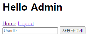 - 다른 관리자 계정을 입력해서 [사용자삭제] 버튼을 클릭해서 성공되는지 확인한다.