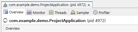 선택된 프로세스에 대해 기본정보, 모니터, 쓰레드, 샘플러, 프로파일러 기능을 사용할 수 있다.