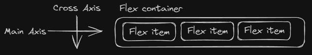Flex container는 배치할 Flex item라는 자식들을 가지는 부모요소이다. Flex item은 Flex container에 포함되고 배치될 요소들이다. 그리고 Main Axis은 수평 방향의 축을 의미하며, Cross Axis은 수직 방향의 축을 의미한다.