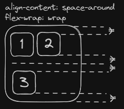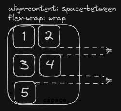 - space-between: 여러 줄인 경우 첫번째 줄을 상단에 마지막 줄은 하단에 맞추고 중간에 여백을 같게 정렬한다.