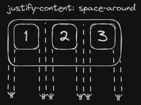 - space-around: Flex item의 좌우 여백이 모두 같게 정렬한다.