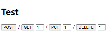 간단한 테스트용 화면이다. POST, GET, PUT, DELETE를 호출하는 있는 버튼이 있다. 그리고 GET, PUT, DELETE 버튼 오른쪽에는 ID값을 입력할 수 있는 텍스트 박스가 있다.