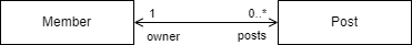 @ManyToOne과 @OneToMany 어노테이션으로 여러 엔티티가 한 엔티티를 참조하는 관계을 설정한다. 예를 들어 멤버와 게시글의 관계를 보자. 멤버는 여러 게시글을 작성할 수 있지만, 게시글 입장에서 소유자는 1명이 된다. 클래스 다이어그램으로 표현하면 다음과 같다.