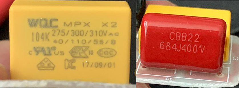 커패시터는 MPX X2는 0.1u F, CBB22는 0.6u F, 전해 커패시터은 114u F이다.